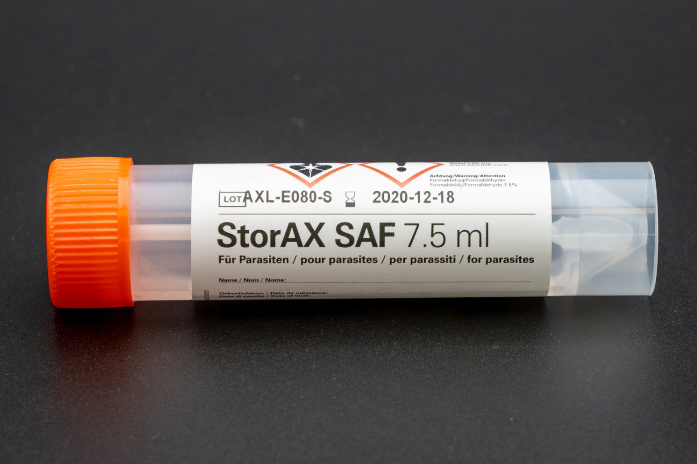 | Bemerkungen | MaterialCAVE: SAF Medium für allgemeine Stuhlbakteriologie nicht geeignet ProbeentnahmeProtozoen: lebenswarme Probe möglichst rasch in 10 mL SAF-Lösung geben, gut schütteln, um eine optimale Fixierung allfälliger Protozoen zu erreichen; Zwei bis drei Proben an verschiedenen Tagen entnehmen; | |||||||||||||||